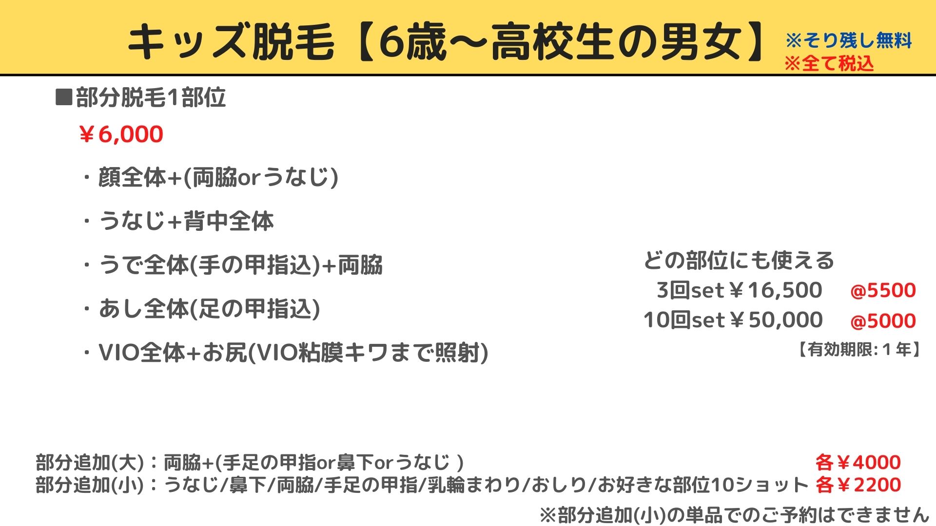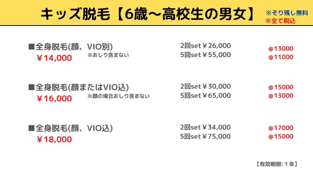 キッズ脱毛【6歳~高校生の男女】